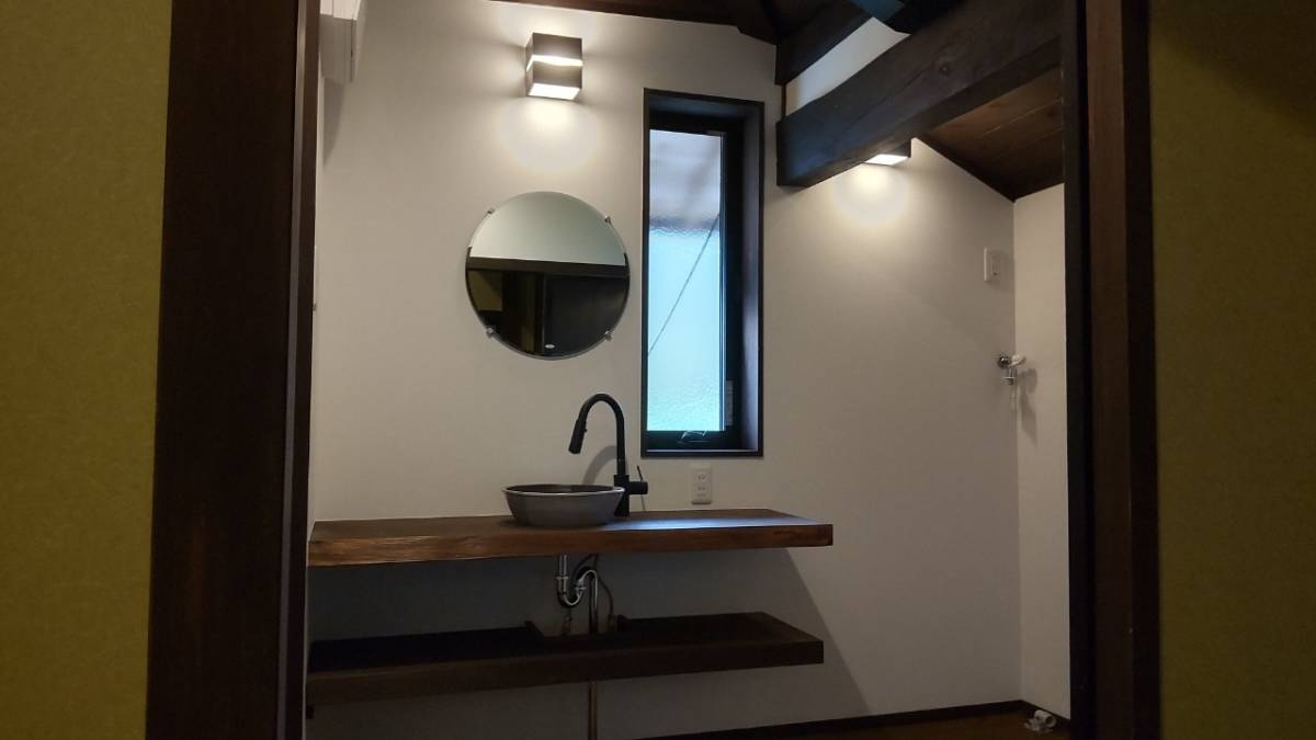 こちらは洗面台です。洗面ボウルは施主様のお持込、ボウルに合う水栓金具などを見立て、
