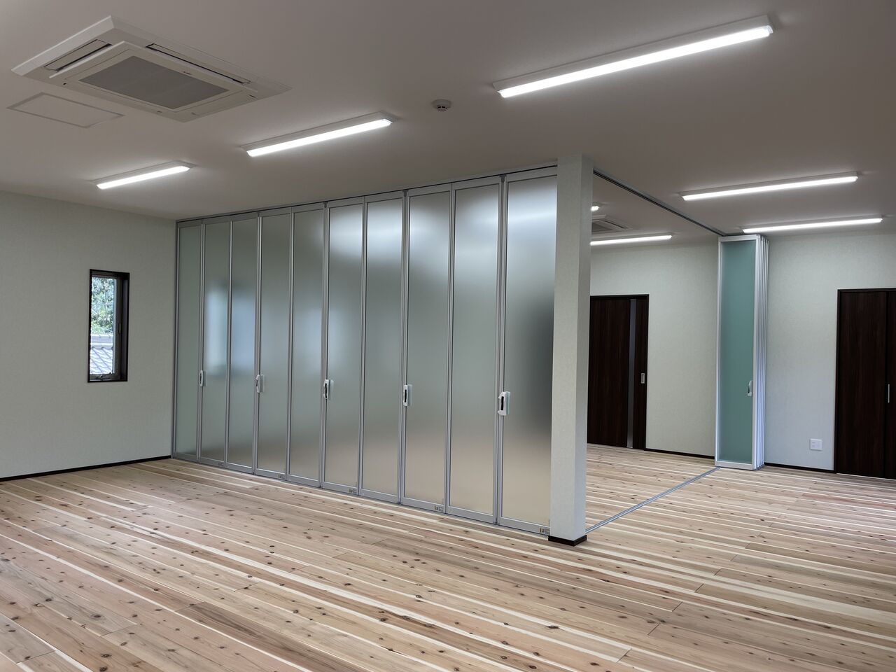 こちらは2階の会議室。人数や用途に合わせ、仕切りを使えるようになっています。