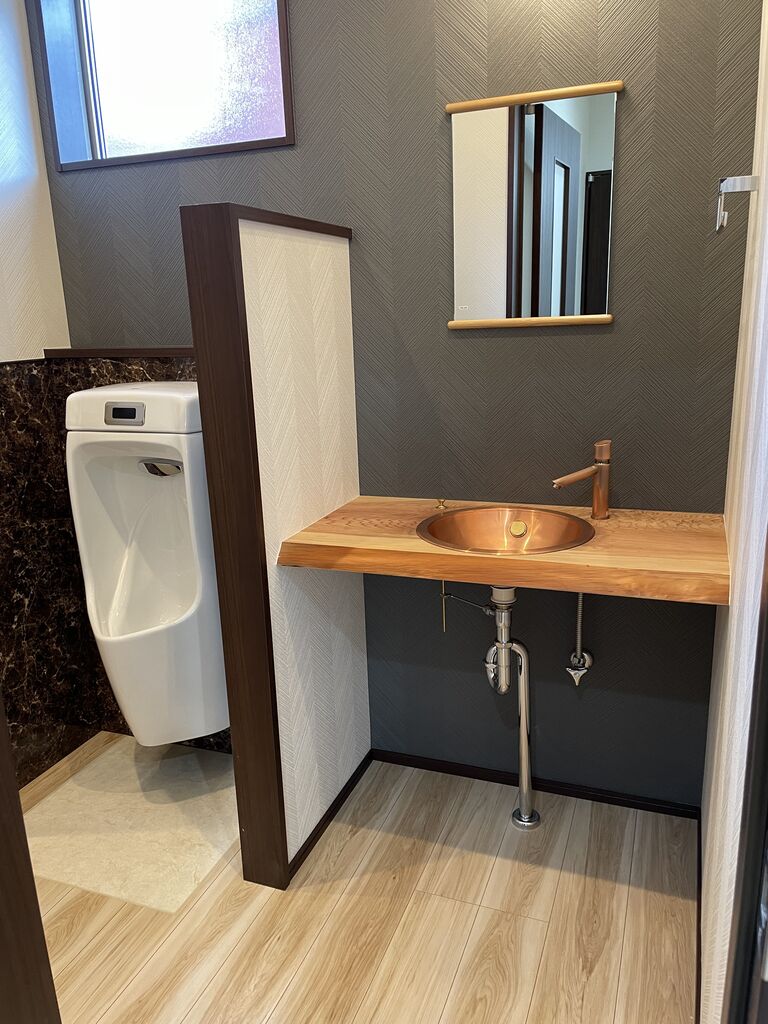お手洗いは作業員さんの利便性を考え小便器も設置しています。