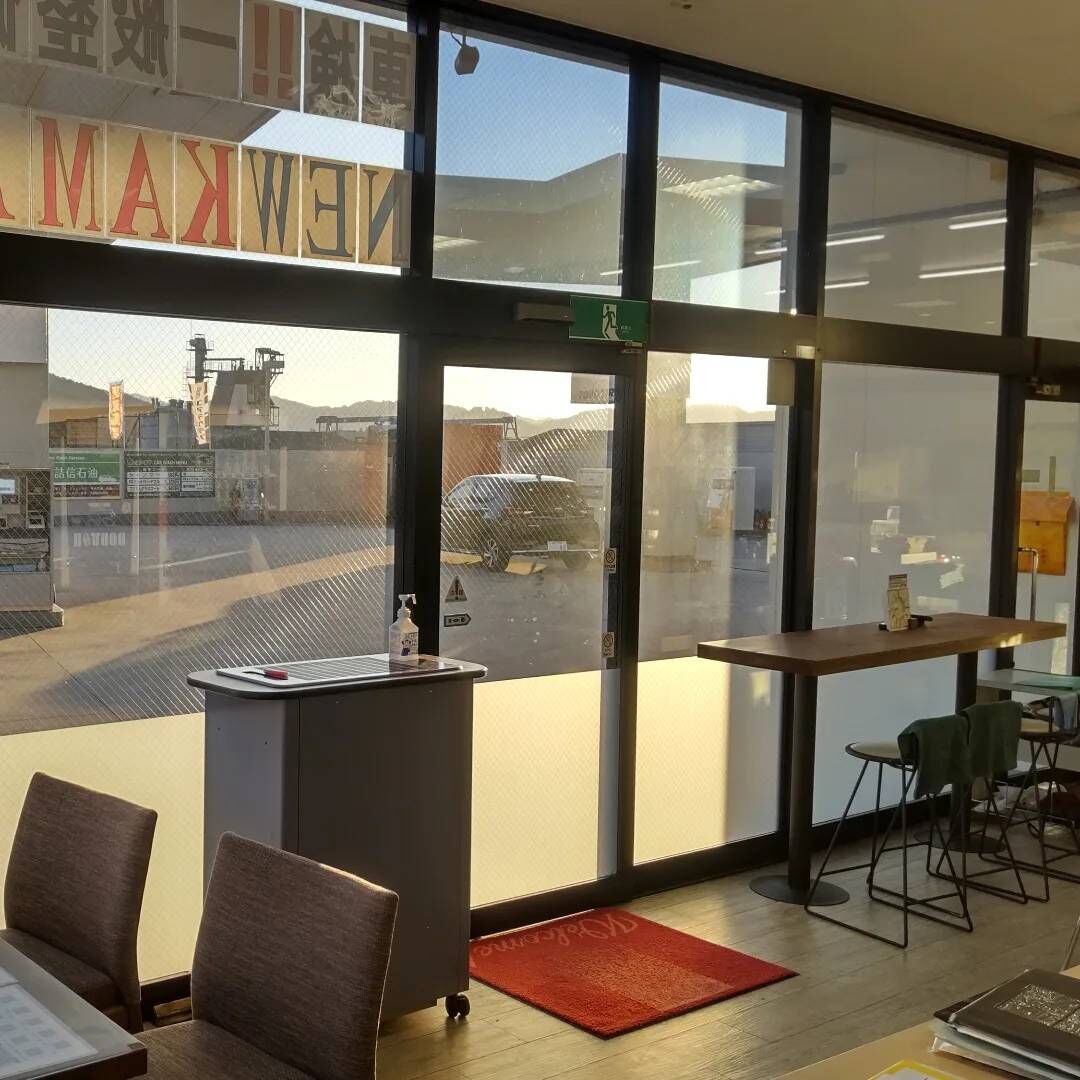 商談や洗車などのメンテナンスの待ち時間等にゆったりした気持ちで過ごしていただける空間になっていれば幸いです。